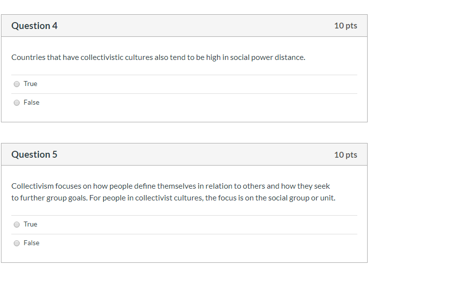 Solved Question 4 10 Pts Countries That Have Collectivistic Chegg Com